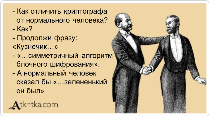 Как отличить криптографа от нормально человека?
