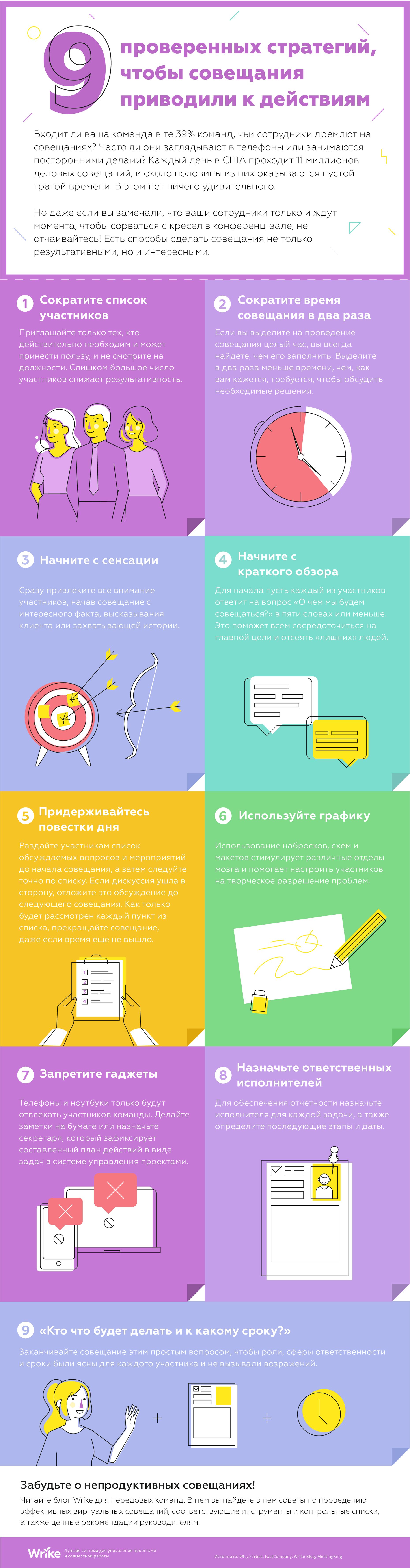 Девять проверенных стратегий для повышения продуктивности совещаний (инфографика)