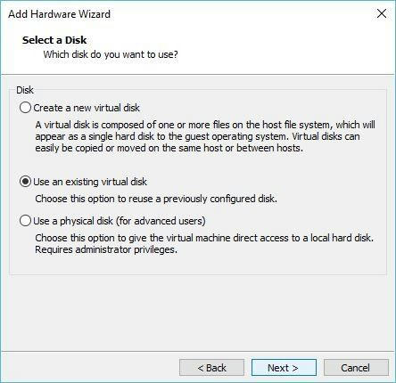 - После выберите “Use an Existing Virtual Disk” и укажите путь к образу с macOS Mojave (большой файл с расширением vmdk).