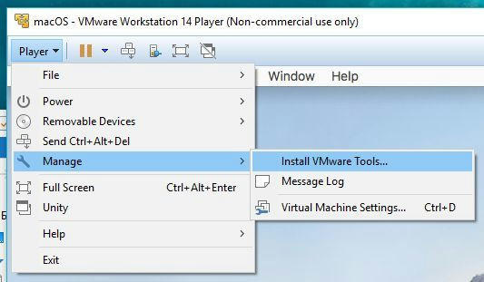 - По окончании установки, подключите VMWare Tools: Player > Manage > Install VMWare Tools. Через некоторое время на Рабочем столе должен появиться образ патча с установщиком.